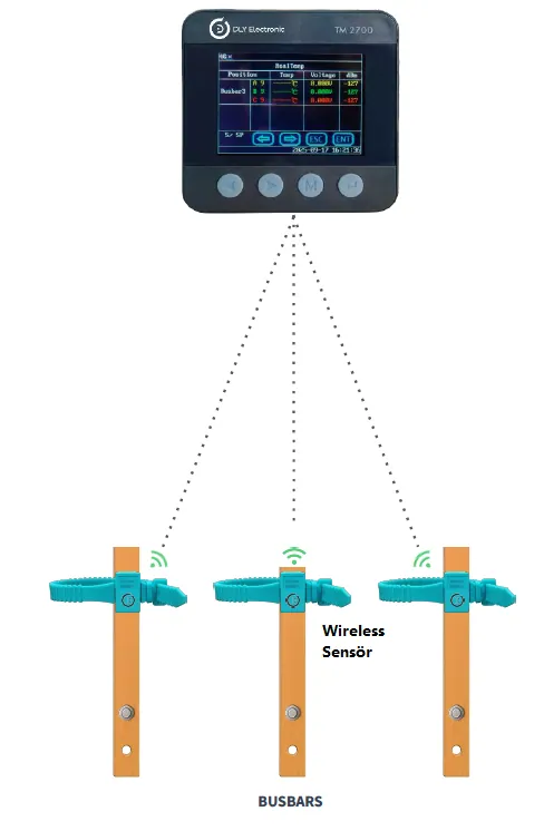 1 adet TM2700 cihaza 27 adet sensör bağlanabilmektedir. Bu da her faza bir adet sensör takarak 27 adet noktanın bara sıcaklıklarını veya her bir faza ( R , S , T ) birer tane sensör takarak 9 adet panonun bara sıcaklığını takip etmeye olanak sağlar.